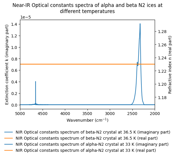 Quirico, Eric; Schmitt, Bernard; Grundy, Will (1992): Near-IR Optical constants spectra of alpha and beta N2 ices at different temperatures. SSHADE/GhoSST (OSUG Data Center). Dataset/Spectral Data. https://doi.org/10.26302/SSHADE/EXPERIMENT_BS_20120925_001