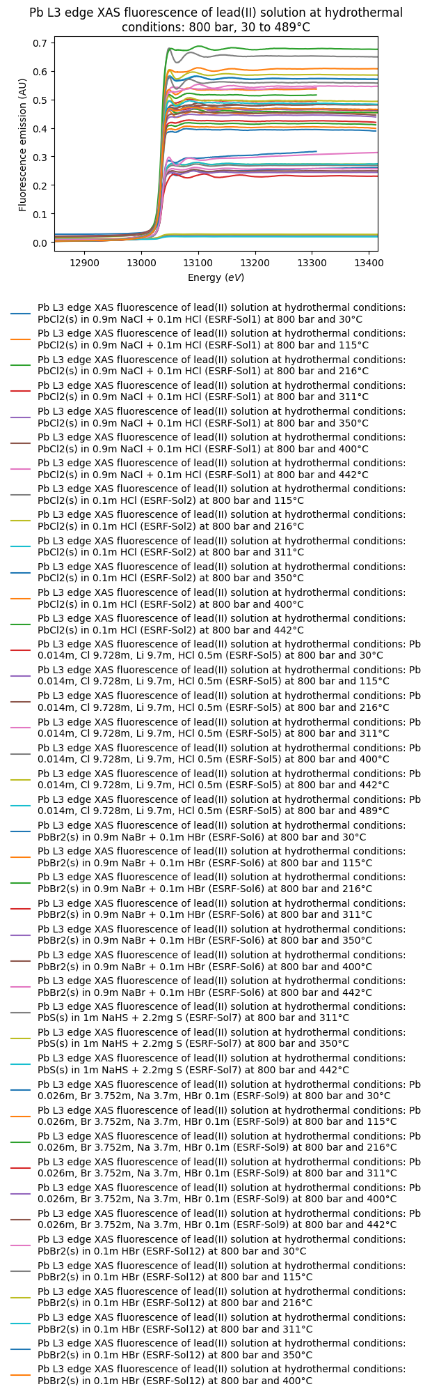 - Testemale, Denis; Brugger, Joel; Etschmann, Barbara; Liu, Weihua (2017): Pb L3 edge XAS fluorescence of lead(II) solution at hydrothermal conditions: 800 bar, 30 to 489°C. SSHADE/FAME (OSUG Data Center). Dataset/Spectral Data. https://doi.org/10.26302/SSHADE/EXPERIMENT_DT_20170215_001