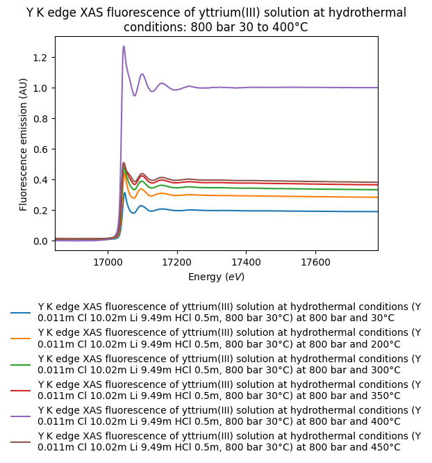 - Y K edge XAS fluorescence of yttrium(III) solution at hydrothermal conditions: 800 bar 30 to 400°C