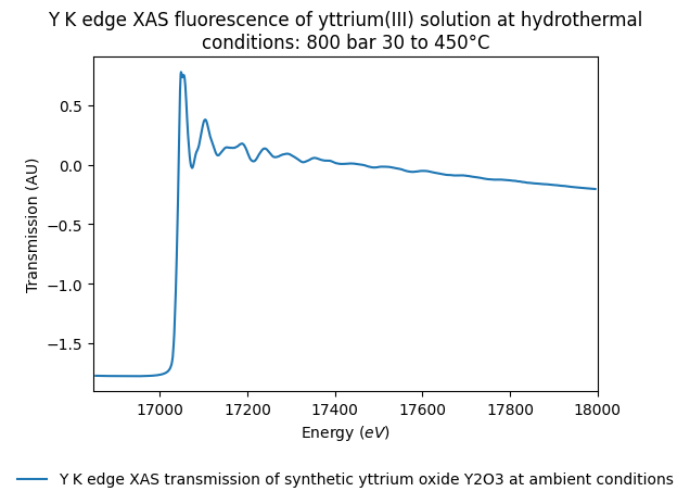 Min - Max ($eV$) Sampling ($eV$) Resolution ($eV$) Position accuracy ($eV$) Absorption edge #1 16848.0 - 18000.0 0.874 $Y$ (K: 17.0384 $keV$) - Comments