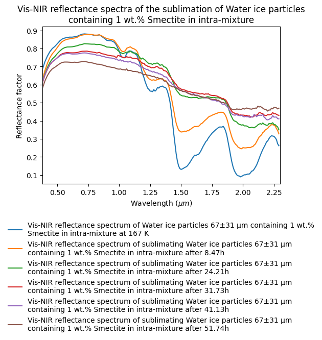 - Vis-NIR reflectance spectra of the sublimation of Water ice particles containing 1 wt.% Smectite in intra-mixture