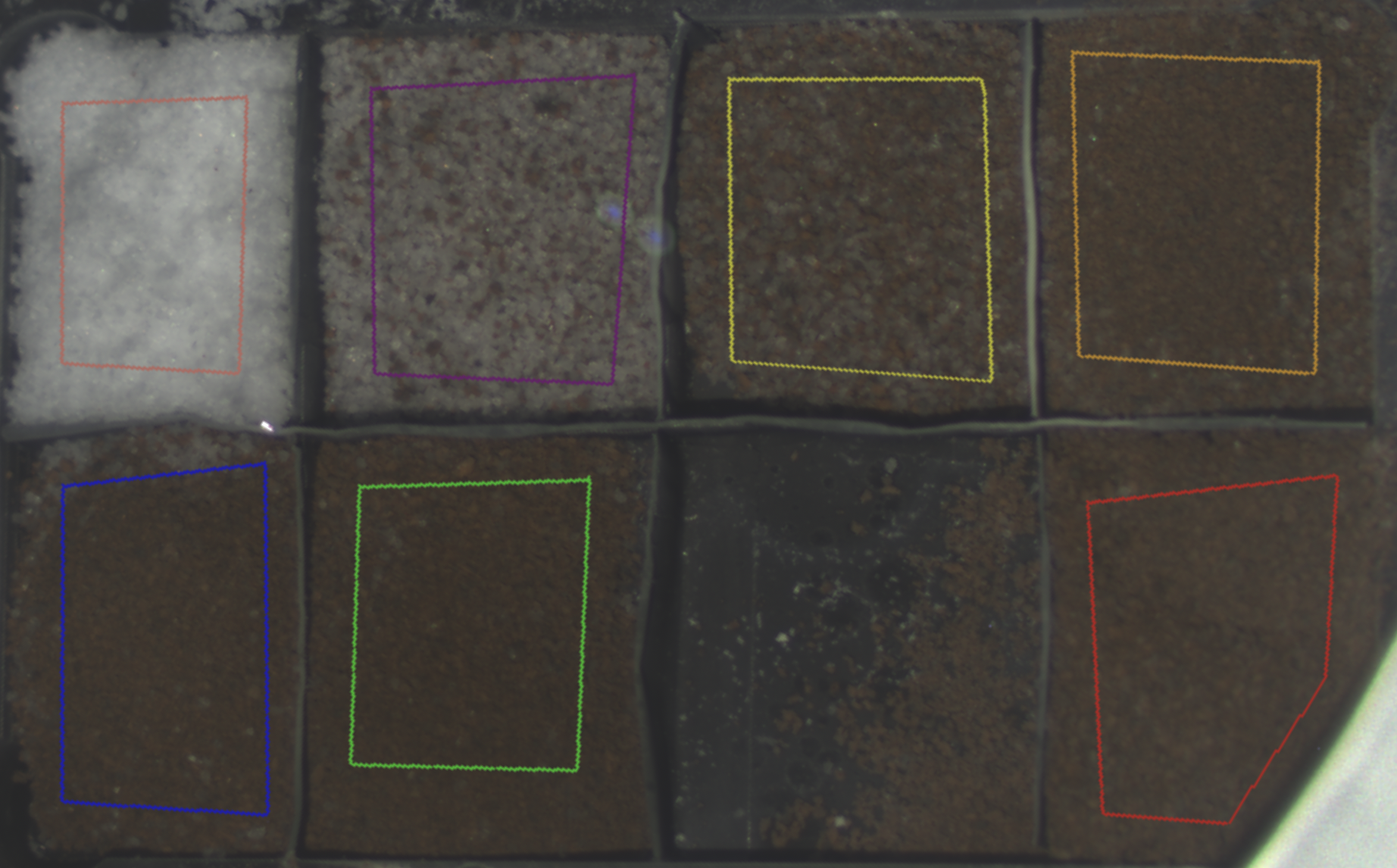 - Particulate CO2 ice produced by crushing a piece of compact CO2 ice and sieving the powder to the 400-800 µm range is mixed intimately with variable amount of soil simulant JSC Mars-1 (25, 50, 65, 90 and 95 wt.% of soil simulant) and the VIS-NIR reflectance spectra of the mixtures is measured. Vis multispectral + NIR low resolution and Vis-NIR high resolution spectra.