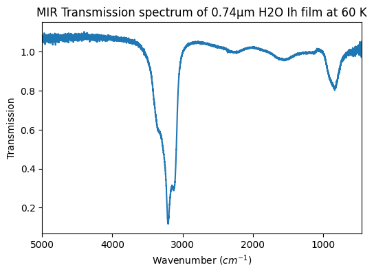 - MIR Transmission spectrum of 0.74µm H2O Ih film at 60 K