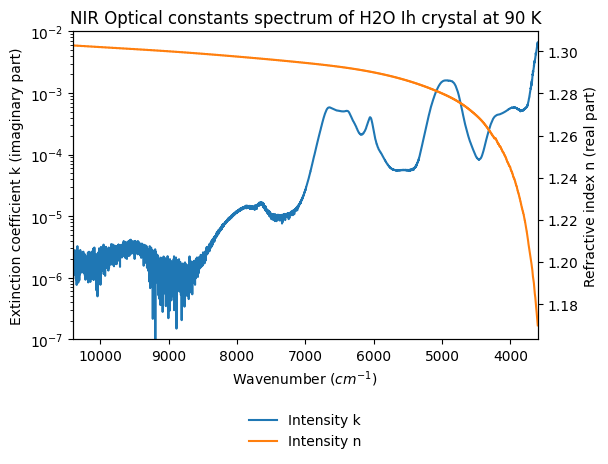 - Grundy, Will; Schmitt, Bernard (1997): NIR Optical constants spectrum of H2O Ih crystal and H2O liquid from 20 to 293 K. SSHADE/GhoSST (OSUG Data Center). Dataset/Spectral Data. https://doi.org/10.26302/SSHADE/EXPERIMENT_BS_20120924_011