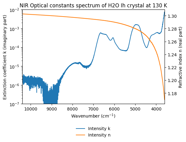 - Grundy, Will; Schmitt, Bernard (1997): NIR Optical constants spectrum of H2O Ih crystal and H2O liquid from 20 to 293 K. SSHADE/GhoSST (OSUG Data Center). Dataset/Spectral Data. https://doi.org/10.26302/SSHADE/EXPERIMENT_BS_20120924_011