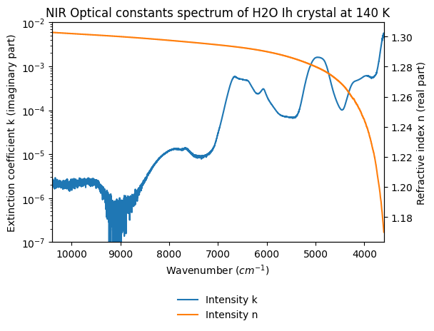 - Grundy, Will; Schmitt, Bernard (1997): NIR Optical constants spectrum of H2O Ih crystal and H2O liquid from 20 to 293 K. SSHADE/GhoSST (OSUG Data Center). Dataset/Spectral Data. https://doi.org/10.26302/SSHADE/EXPERIMENT_BS_20120924_011