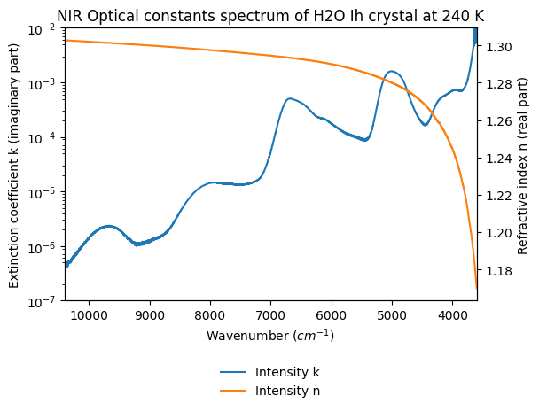 - Grundy, Will; Schmitt, Bernard (1997): NIR Optical constants spectrum of H2O Ih crystal and H2O liquid from 20 to 293 K. SSHADE/GhoSST (OSUG Data Center). Dataset/Spectral Data. https://doi.org/10.26302/SSHADE/EXPERIMENT_BS_20120924_011