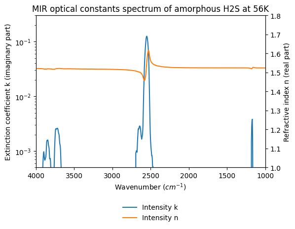 - Trotta, Frederic; Schmitt, Bernard (1992): MIR optical constants of amorphous H2S at 56K. SSHADE/GhoSST (OSUG Data Center). Dataset/Spectral Data. https://doi.org/10.26302/SSHADE/EXPERIMENT_BS_20130125_002