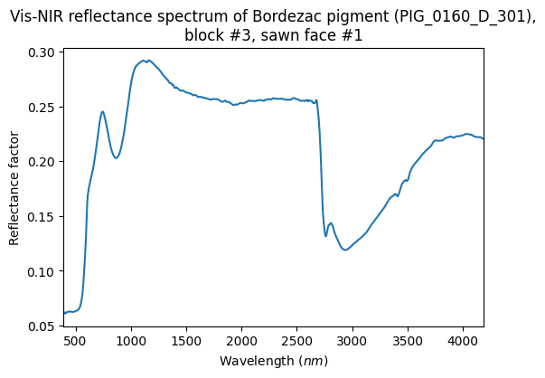 - Schmitt, Bernard; Chalmin-Aljanabi, Emilie; Chassin de Kergommeaux, Aurélie (2019): Vis-NIR reflectance spectra of Bordezac pigments (Pig_0160_D): blocks, powders, plots and painted matters. SSHADE/PIG (OSUG Data Center). Dataset/Spectral Data. https://doi.org/10.26302/SSHADE/EXPERIMENT_BS_20200422_100