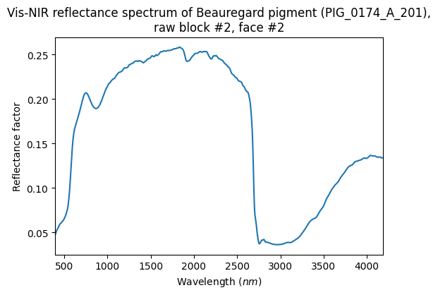- Schmitt, Bernard; Chalmin-Aljanabi, Emilie; Chassin de Kergommeaux, Aurélie (2019): Vis-NIR reflectance spectra of Beauregard pigments (PIG_0174_A): raw blocks, powders, polished plot and painted matter. SSHADE/PIG (OSUG Data Center). Dataset/Spectral Data. https://doi.org/10.26302/SSHADE/EXPERIMENT_BS_20200812_100