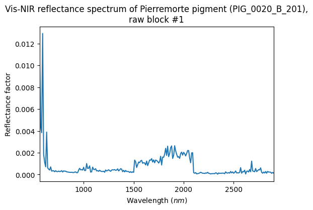 - Schmitt, Bernard; Chalmin-Aljanabi, Emilie (2019): Vis-NIR reflectance spectra of Pierremorte pigments (PIG_0020_A and B): blocks, powders, polished plot and painted matters. SSHADE/PIG (OSUG Data Center). Dataset/Spectral Data. https://doi.org/10.26302/SSHADE/EXPERIMENT_BS_20200815_100