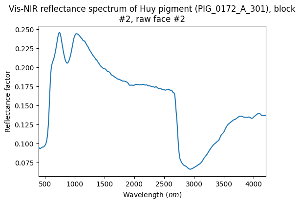 - Schmitt, Bernard; Chalmin-Aljanabi, Emilie; Chassin de Kergommeaux, Aurélie (2019): Vis-NIR reflectance spectra of Huy pigments (PIG_0172_A): blocks, powders, plots and painted matters. SSHADE/PIG (OSUG Data Center). Dataset/Spectral Data. https://doi.org/10.26302/SSHADE/EXPERIMENT_BS_20200813_100