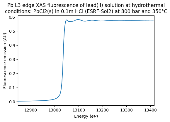 Pb L3 edge XAS fluorescence of lead(II) solution at hydrothermal conditions: PbCl2(s) in 0.1m HCl (ESRF-Sol2) at 800 bar and 350°C