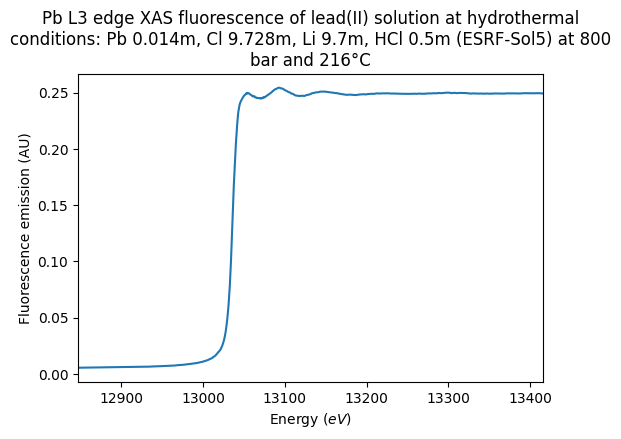 - Testemale, Denis; Brugger, Joel; Etschmann, Barbara; Liu, Weihua (2017): Pb L3 edge XAS fluorescence of lead(II) solution at hydrothermal conditions: 800 bar, 30 to 489°C. SSHADE/FAME (OSUG Data Center). Dataset/Spectral Data. https://doi.org/10.26302/SSHADE/EXPERIMENT_DT_20170215_001