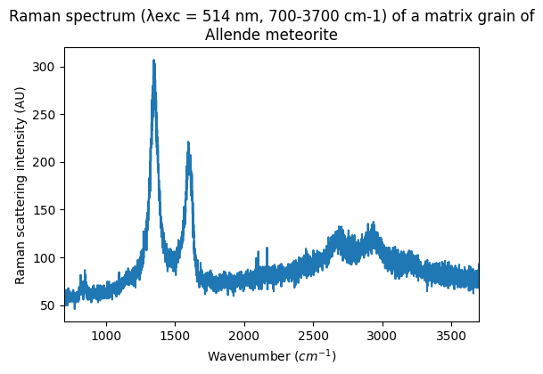 Raman spectrum (λexc = 514 nm, 700-3700 cm-1) of a matrix grain of Allende meteorite