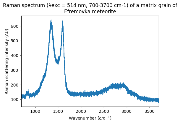 - Bonal, Lydie (2003): Raman spectra (λ = 514 nm) of matrix grains of CV meteorites. SSHADE/GhoSST (OSUG Data Center). Dataset/Spectral Data. https://doi.org/10.26302/SSHADE/EXPERIMENT_LB_20140114_001