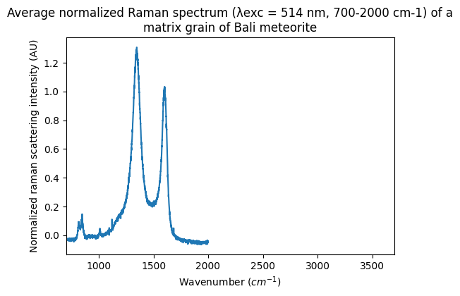Average normalized Raman spectrum (λexc = 514 nm, 700-2000 cm-1) of a matrix grain of Bali meteorite