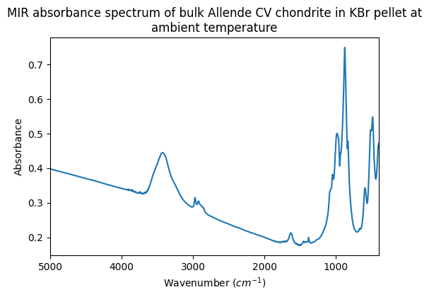 - Beck, Pierre (2012): Mid-IR absorbance spectra of 5 bulk CV chondrites in KBr pellets at ambient temperature, 150°C and 300°C. SSHADE/GhoSST (OSUG Data Center). Dataset/Spectral Data. https://doi.org/10.26302/SSHADE/EXPERIMENT_LB_20170718_001