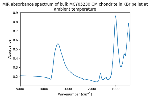 - Beck, Pierre; Garenne, Alexandre (2012): Mid-IR absorbance spectra of bulk CM chondrites in KBr pellets at ambient temperature, 150°C and 300°C. SSHADE/GhoSST (OSUG Data Center). Dataset/Spectral Data. https://doi.org/10.26302/SSHADE/EXPERIMENT_LB_20170721_001