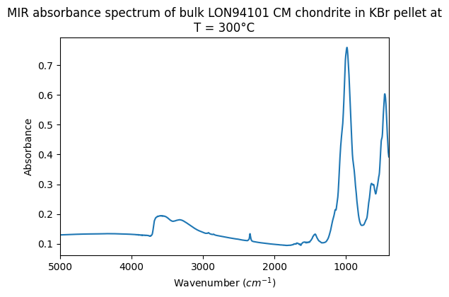 - Beck, Pierre; Garenne, Alexandre (2012): Mid-IR absorbance spectra of bulk CM chondrites in KBr pellets at ambient temperature, 150°C and 300°C. SSHADE/GhoSST (OSUG Data Center). Dataset/Spectral Data. https://doi.org/10.26302/SSHADE/EXPERIMENT_LB_20170721_001