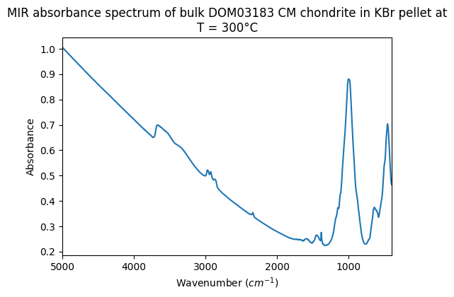 - Beck, Pierre; Garenne, Alexandre (2012): Mid-IR absorbance spectra of bulk CM chondrites in KBr pellets at ambient temperature, 150°C and 300°C. SSHADE/GhoSST (OSUG Data Center). Dataset/Spectral Data. https://doi.org/10.26302/SSHADE/EXPERIMENT_LB_20170721_001