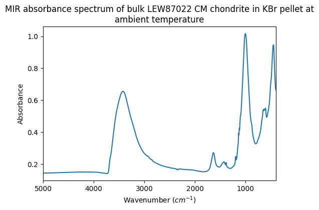 - Beck, Pierre; Garenne, Alexandre (2012): Mid-IR absorbance spectra of bulk CM chondrites in KBr pellets at ambient temperature, 150°C and 300°C. SSHADE/GhoSST (OSUG Data Center). Dataset/Spectral Data. https://doi.org/10.26302/SSHADE/EXPERIMENT_LB_20170721_001