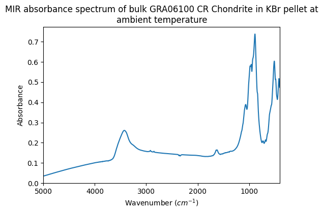 - Beck, Pierre (2012): Mid-IR absorbance spectra of bulk CR chondrites in KBr pellets at ambient temperature, 150°C and 300°C. SSHADE/GhoSST (OSUG Data Center). Dataset/Spectral Data. https://doi.org/10.26302/SSHADE/EXPERIMENT_LB_20170725_001