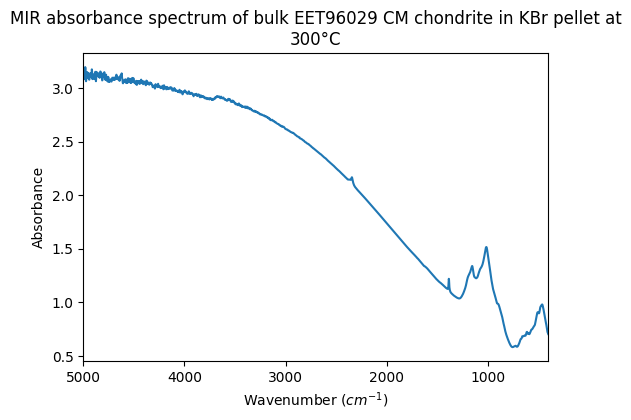- Beck, Pierre (2012): Mid-IR absorbance spectra of bulk unusual CMs and C2 chondrites in KBr pellets at 22°C, 150°C and 300°C. SSHADE/GhoSST (OSUG Data Center). Dataset/Spectral Data. https://doi.org/10.26302/SSHADE/EXPERIMENT_LB_20170726_001