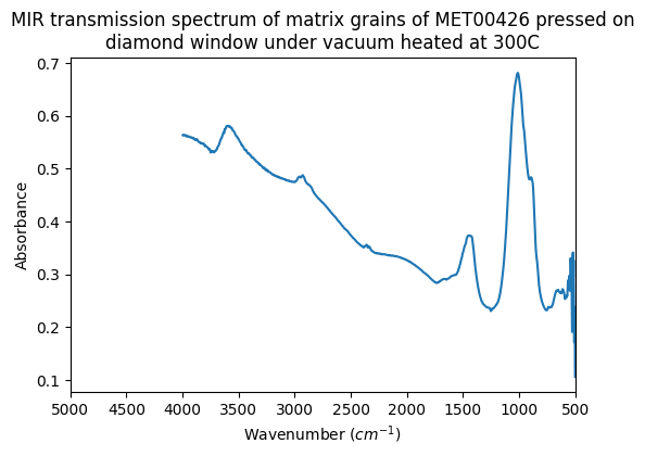 MIR transmission spectrum of matrix grains of MET00426 pressed on diamond window under vacuum heated at 300C