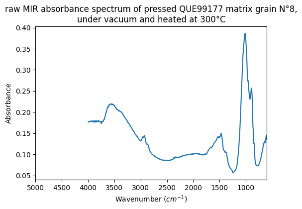 raw MIR absorbance spectrum of pressed QUE99177 matrix grain N°8, under vacuum and heated at 300°C