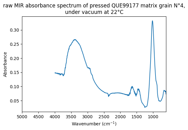 raw MIR absorbance spectrum of pressed QUE99177 matrix grain N°4, under vacuum at 22°C