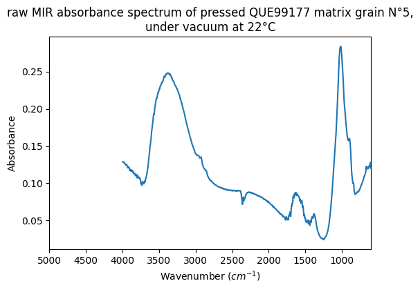 raw MIR absorbance spectrum of pressed QUE99177 matrix grain N°5, under vacuum at 22°C