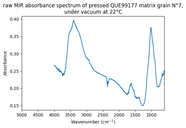 raw MIR absorbance spectrum of pressed QUE99177 matrix grain N°7, under vacuum at 22°C