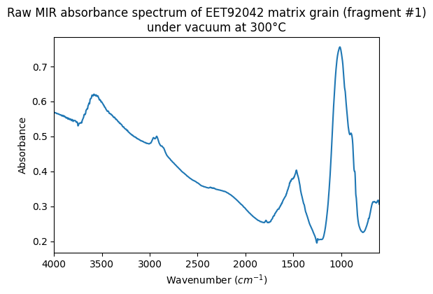 Raw MIR absorbance spectrum of EET92042 matrix grain (fragment #1) under vacuum at 300°C