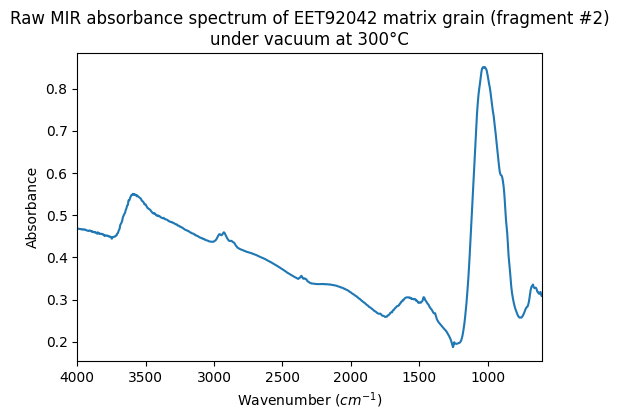 Raw MIR absorbance spectrum of EET92042 matrix grain (fragment #2) under vacuum at 300°C