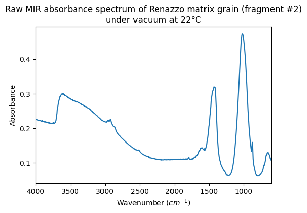 Raw MIR absorbance spectrum of Renazzo matrix grain (fragment #2) under vacuum at 22°C