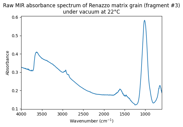 Raw MIR absorbance spectrum of Renazzo matrix grain (fragment #3) under vacuum at 22°C