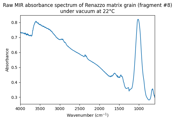 Raw MIR absorbance spectrum of Renazzo matrix grain (fragment #8) under vacuum at 22°C
