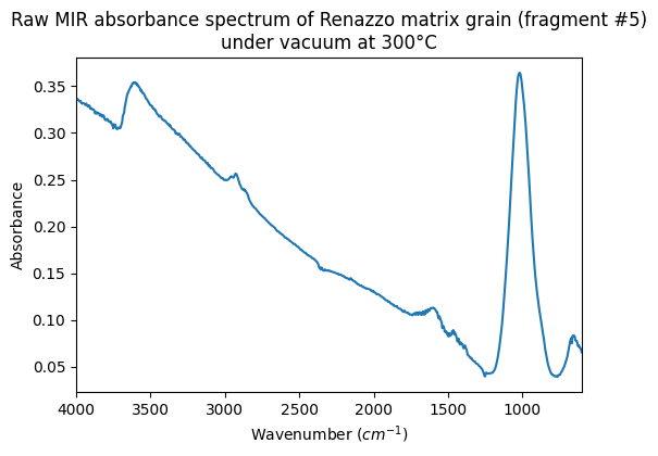 Raw MIR absorbance spectrum of Renazzo matrix grain (fragment #5) under vacuum at 300°C