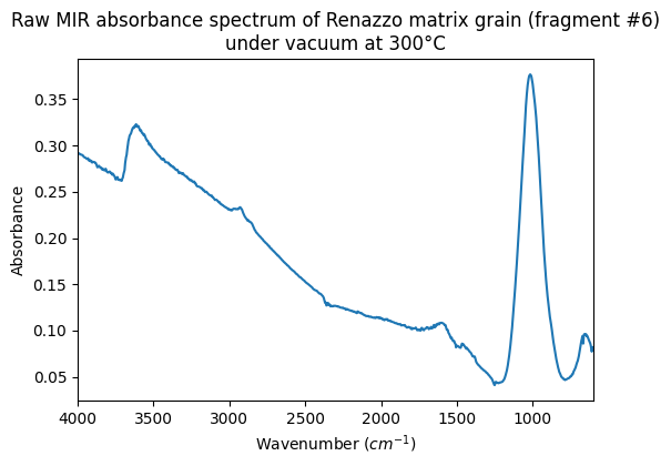 Raw MIR absorbance spectrum of Renazzo matrix grain (fragment #6) under vacuum at 300°C