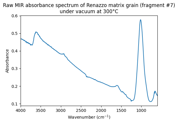 Raw MIR absorbance spectrum of Renazzo matrix grain (fragment #7) under vacuum at 300°C