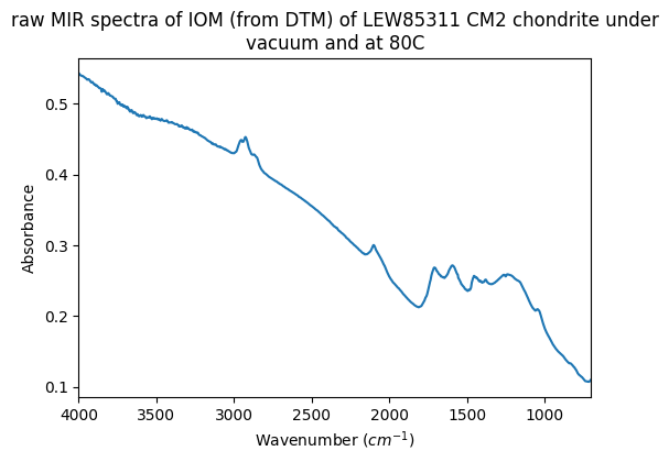 - Quirico, Eric; Flandinet, Laurene (2016): MIR spectra of IOM from CM and C2-ungrouped chondrites under vacuum and at T=80C. SSHADE/GhoSST (OSUG Data Center). Dataset/Spectral Data. https://doi.org/10.26302/SSHADE/EXPERIMENT_LB_20180718_001