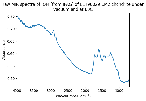 - Quirico, Eric; Flandinet, Laurene (2016): MIR spectra of IOM from CM and C2-ungrouped chondrites under vacuum and at T=80C. SSHADE/GhoSST (OSUG Data Center). Dataset/Spectral Data. https://doi.org/10.26302/SSHADE/EXPERIMENT_LB_20180718_001
