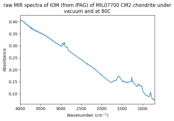 - Quirico, Eric; Flandinet, Laurene (2016): MIR spectra of IOM from CM and C2-ungrouped chondrites under vacuum and at T=80C. SSHADE/GhoSST (OSUG Data Center). Dataset/Spectral Data. https://doi.org/10.26302/SSHADE/EXPERIMENT_LB_20180718_001
