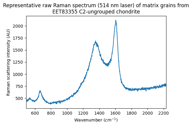 - Quirico, Eric (2016): Representative raw Raman spectra (514 nm) of matrix grains from CM and C2-ungrouped chondrites. SSHADE/GhoSST (OSUG Data Center). Dataset/Spectral Data. https://doi.org/10.26302/SSHADE/EXPERIMENT_LB_20180719_001