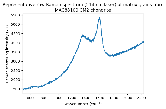 - Quirico, Eric (2016): Representative raw Raman spectra (514 nm) of matrix grains from CM and C2-ungrouped chondrites. SSHADE/GhoSST (OSUG Data Center). Dataset/Spectral Data. https://doi.org/10.26302/SSHADE/EXPERIMENT_LB_20180719_001