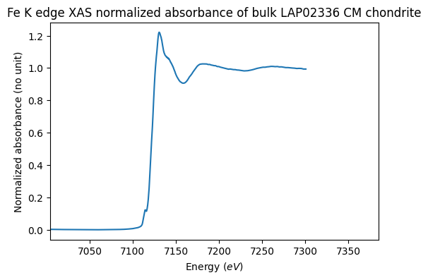 Fe K edge XAS absorbance of bulk CM carbonaceous chondrites