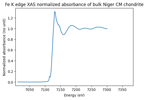 Fe K edge XAS normalized absorbance of bulk Niger CM chondrite