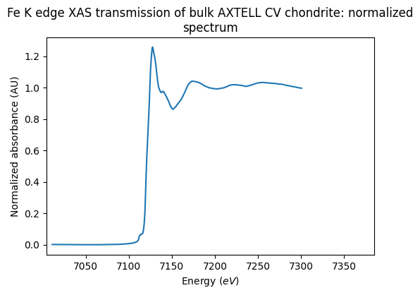 Fe K edge XAS transmission of bulk AXTELL CV chondrite: normalized spectrum