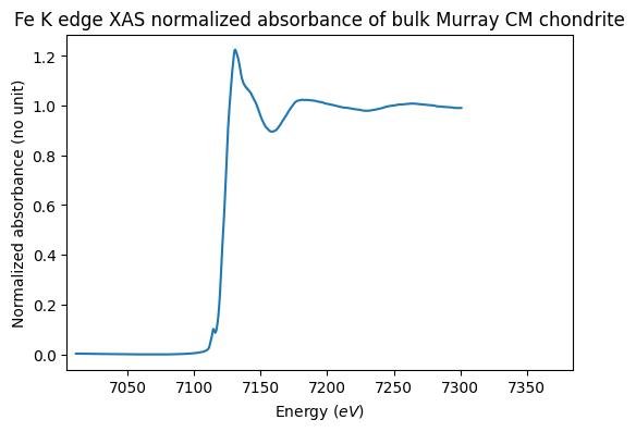 Fe K edge XAS absorbance of bulk CM carbonaceous chondrites